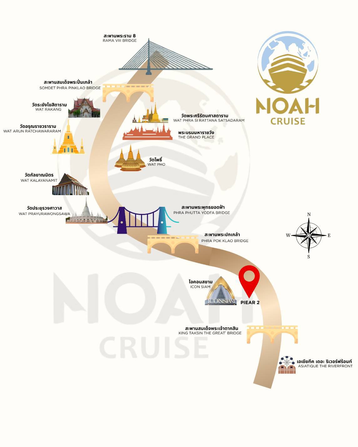 ล่องเรือดินเนอร์ชมวิวแม่น้ำเจ้าพระยาวันปีใหม่ รอบพระอาทิตย์ตกดิน!! (โปรแกรม Celebrate New Year Eve 2026 Dinner Cruise) โดยเรือ Noah Cruise (เรือ 3 ชั้น - Front Deck - Rooftop) ล่องเรือเต็มอิ่ม 2 ชั่วโมงพร้อมรับประทานอาหารบุฟเฟ่ต์นานาชาติ+ซีฟู้ด กุ้งเผา หอยเผา แซลมอนซาชิมิ ซูชิ และอื่นๆอีกมากมาย พิเศษสุด!! Free Flow น้ำอัดลม ตลอดการล่องเรือ รวมทั้งเพลิดเพลินกับการแสดงดนตรีร้องเพลงสด พร้อมชมวิวแม่น้ำเจ้าพระยาในค่ำคืนส่งท้ายปีเก่าต้อนรับปีใหม่