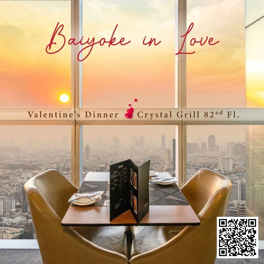 Dinner: วันวาเลนไทน์!! ตึกใบหยกสกาย Crystal Grill Restaurant ชั้น 82 – Special Menu & International Specialized Premium Seafood & Steak Buffet บุฟเฟ่ต์ไม่จำกัดเวลา วันเสาร์ ที่ 14 กุมภาพันธ์ 2569